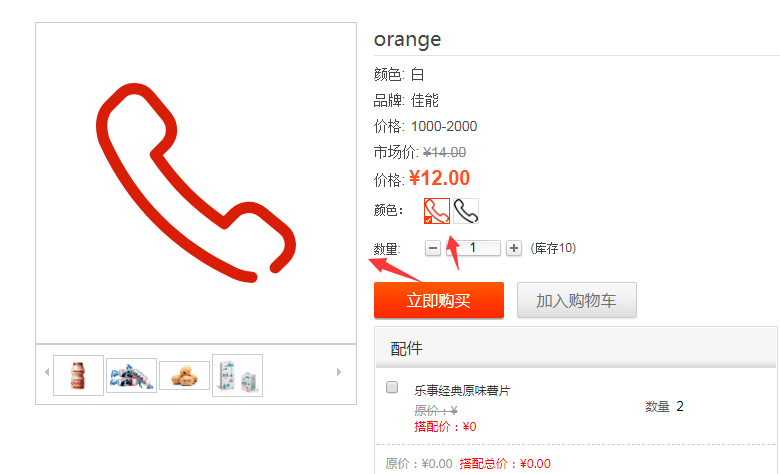 二.产品详情中有图片的规格,点击之后,可在左侧大图显示选中的规格图片