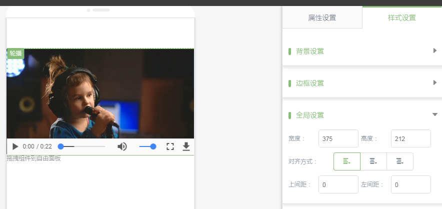 ③.样式设置里可以设置视频的高度和宽度以及间距