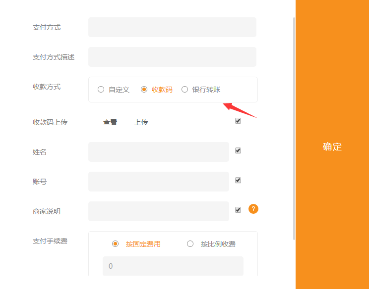 ①.精工建站自建支付方式新增了扫码和银行转账两种类型(营销版);
