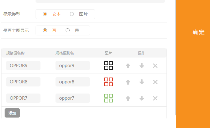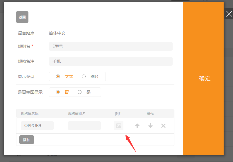 ②.显示类型选择为文本,规格处也可以上传规格图片