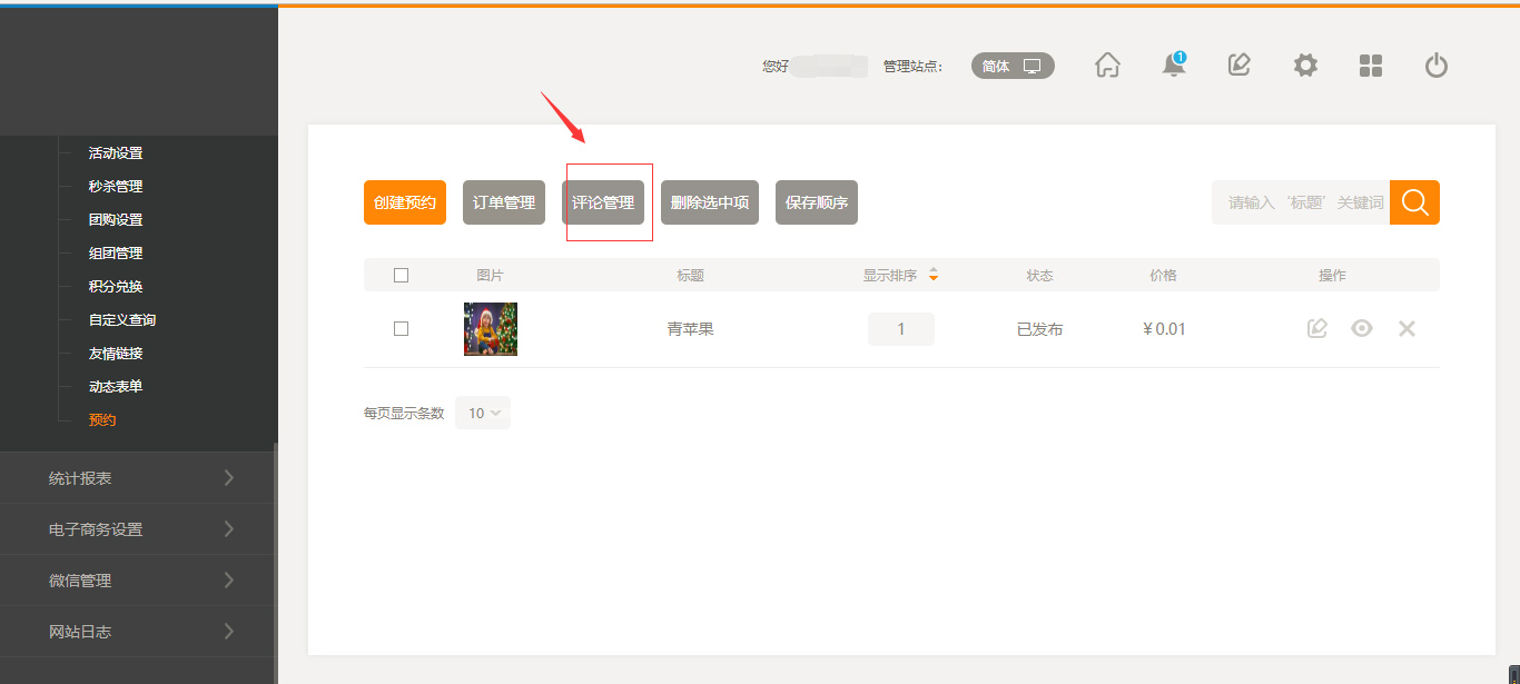 1.“后台管理”-“预约”-“评论管理”,点击进入后,可以选择对评论进行删除和隐藏,操作之后,在前台页面中则不会显示该评论的内容,如图所示: