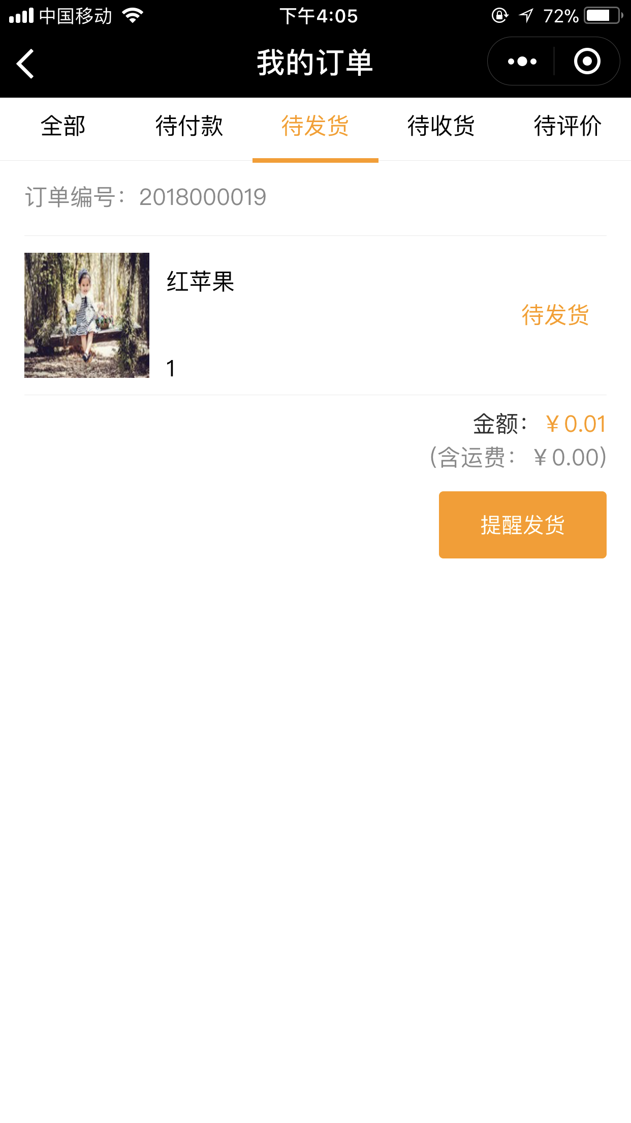 2.后台在“订单列表”中,可以看到有所有的订单详情,对订单进行操作;前端页面中,在会员中心的“我的订单”中可以看到相关订单,如图:
