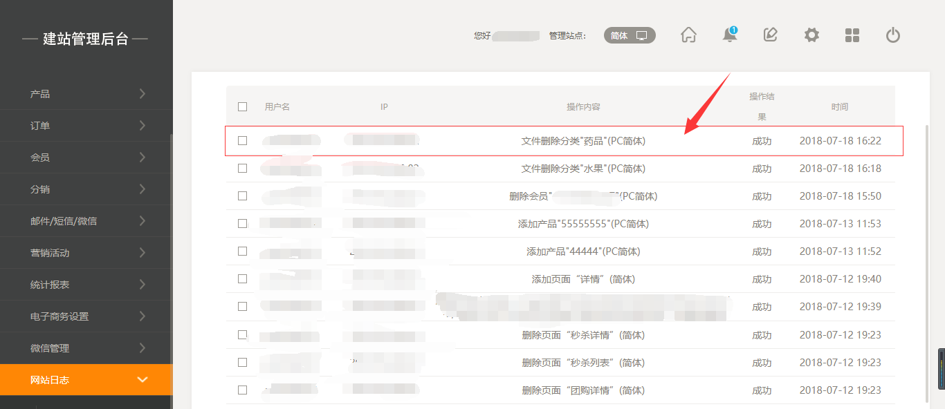 精工建站新功能介绍 更新描述: 1.精工建站会员中心新增注册项查看入口; 2.网站日志中新增文件分类删除日志; 3.精工建站产品列表分页优化; 4. 小程序新增底部导航拨打电话功能 一.精工建站会员中心新增注册项查看入口(PC、手机营销版) 1.在“后台管理”中,点击“会员”-“会员注册项”选择需要用户填写的注册项内容,选择完成之后,当用户将注册信息填写完成之后,在“会员中心”中,可以看到注册的内容,并可以修改注册内容,如图所示: 二.网站日志中新增文件分类删除记录 1.在建站编辑器中,点击“文件”,删除已有的分类,在“后台管理”-“网站日志”-“日志列表”中会有该条删除记录,如图所示: 三.产品列表分页优化(手机营销版、设计师版) 1.以手机版为例,点击“产品插件”-“产品列表”拖入到编辑器中,选择“样式设置”,在“参数设置”中开启“显示分页”,选择需要的分页样式,点击“确定”即可,如图所示: 2.设计师版与手机版操作一致,这里不做赘述。 四.小程序新增底部导航拨打电话功能(标准版、营销版) 1.在编辑器中,点击“底部导航”设置,添加“栏目”名称,将其“点击事件”选择为“功能”-“拨打电话”并同时输入电话号码,点击保存即可,如图所示: