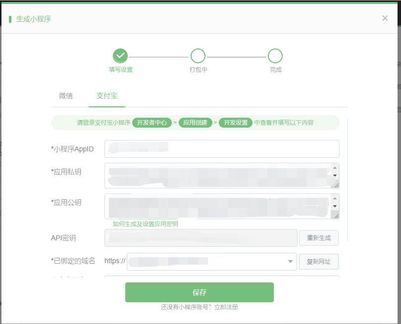 四.新增支付宝小程序(营销版)