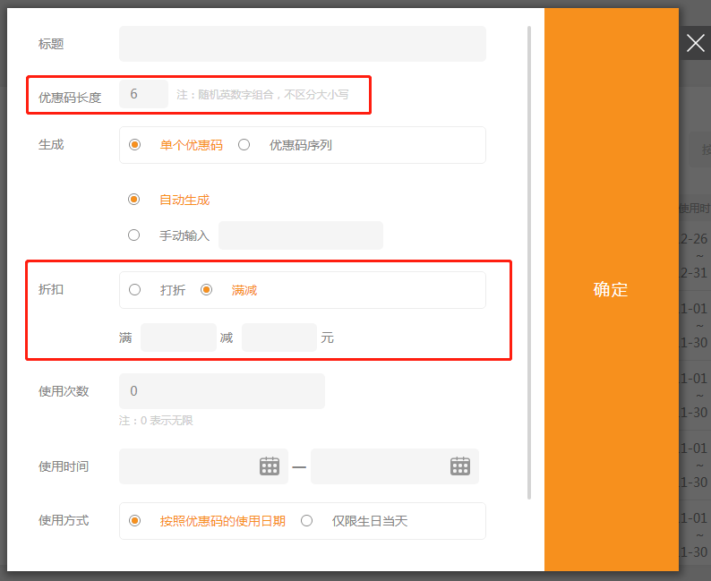 3.优惠码新增满减模式并优化优惠码长度、