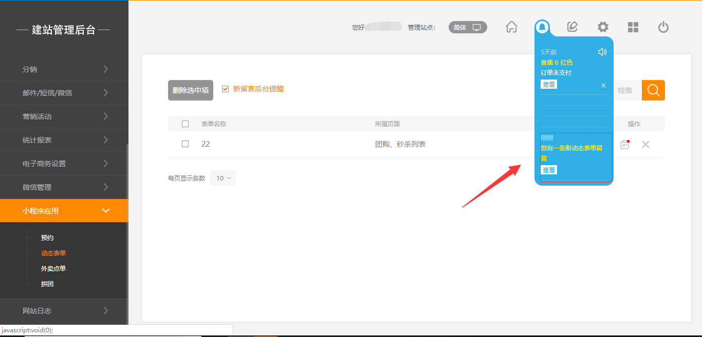 1.在小程序前台页面提交动态表单后,后台会有该提醒,并且会有该提交的用户名,如图所示: