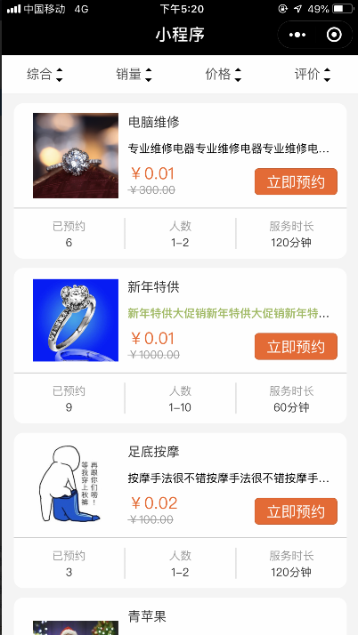 一.微信小程序预约列表与详情页面新增样式(营销版)