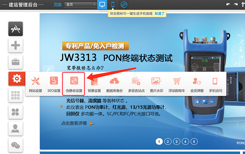 2.前台伪静态规则添加完成后,在建站后台添加文章或产品时,会有“伪静态标题”填写项(非必填),如果没有填写伪静态的标题,系统则会自动分配,如图所示:
