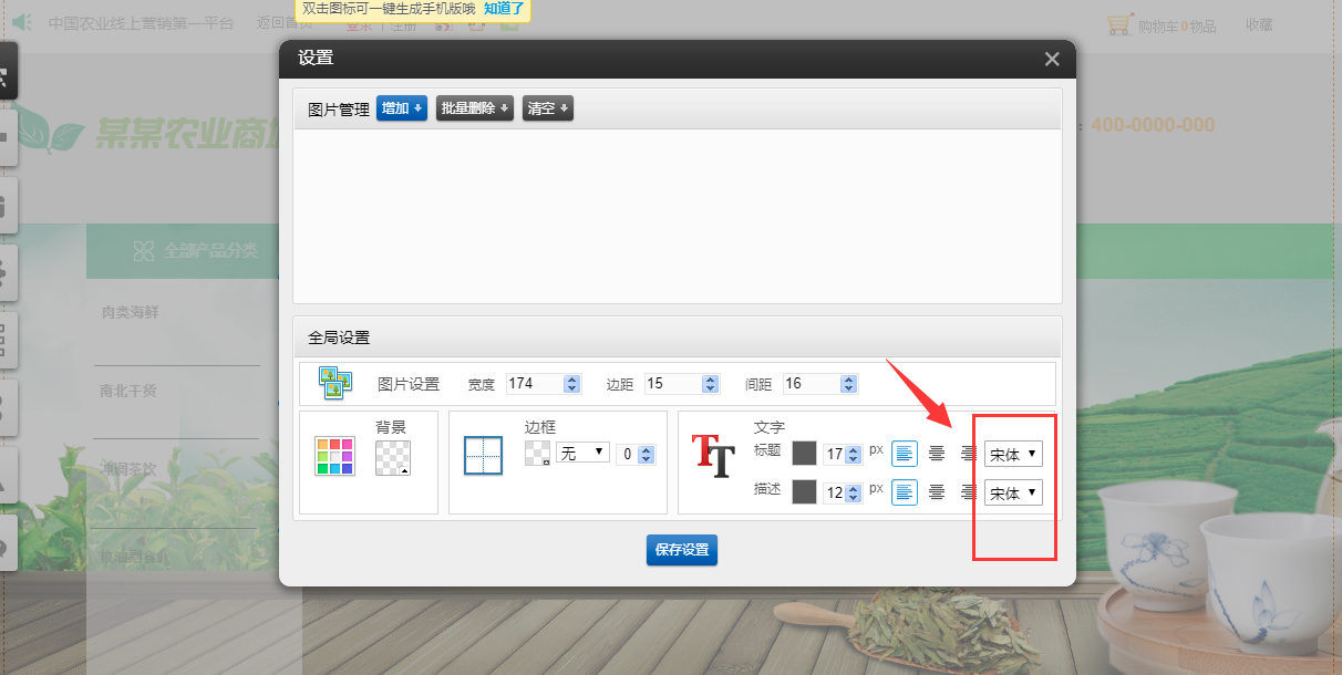 1.在PC编辑器中,点击插件,拖入Blocksit插件,点击“设置”,增加了“标题”和“描述”文字的字体样式设置,如图所示: