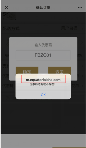 1.手机提交订单时,输入优惠码错误时,提示优化,如图所示: